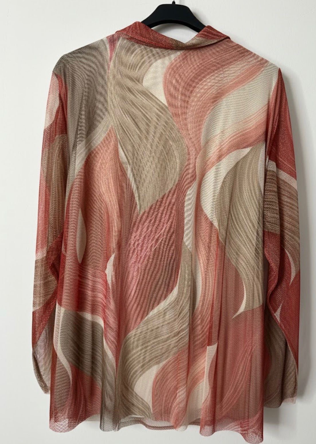Confeccionada en una malla fina (mesh) o gasa semitransparente, un material ligero, elástico y que no se arruga, ideal para lograr un look elegante pero cómodo.